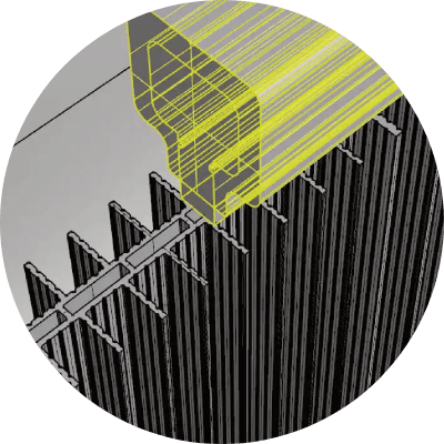 発熱体の効率を最大化するために、流路設計は非常に重要な役割を果たします。シアーパネルの内部流路は、最先端のCFDソフトウェアを使用して分析され、流路モデルをメッシュに分割し、流量、圧力、温度、材料、粘度、密度などを考慮した解析を基に設計されています。