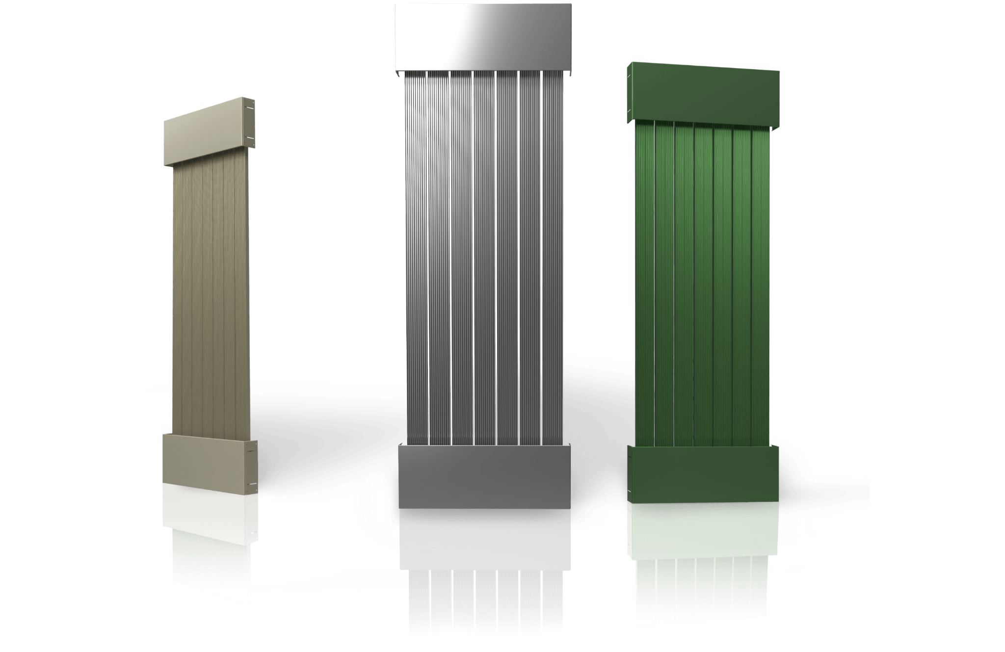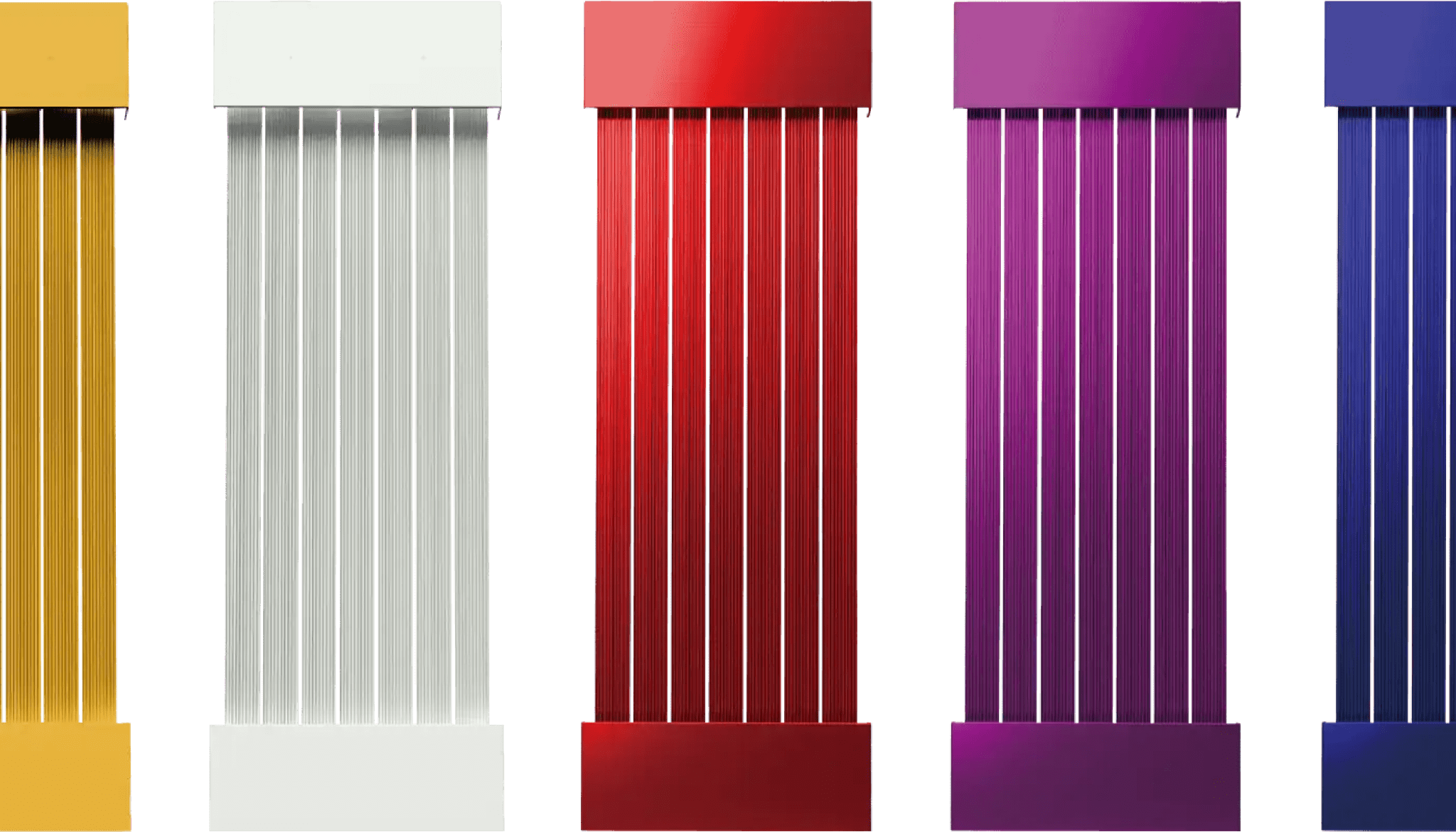 シアーは、建築デザイナーの方々のニーズに応え、多種多様なサイズとカラーバリエーションを取り揃えています。壁掛け可能な「ウォールマウントタイプ」とついたて方式の「パーティションタイプ」を用意し、各タイプには35種類のサイズバリエーション、約300種類のカラーバリエーションがあります。これにより、自由自在な設計が可能な本格的なプロフェッショナル仕様の輻射式エアコンとなっています。