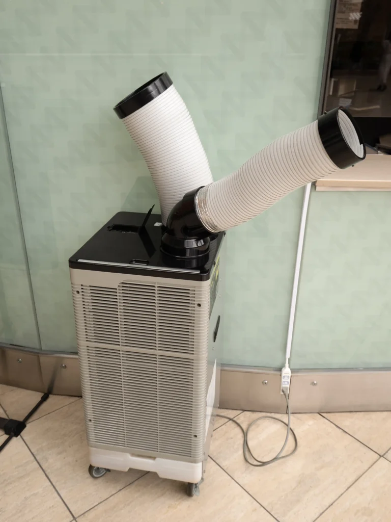 スポットクーラーは、コンパクトタイプのエアコンのようなものです。エアコンと同じように取り込んだ空気を冷却し冷風として送り返すことができます。