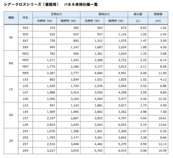 ※パネルの能力は室温とパネル本体の温度差(ΔT℃)によって変動します。パネルの能力値はTHEAR取扱説明書内、P18にあります「パネル本体仕様一覧」に記載がありますのでご参照ください。
