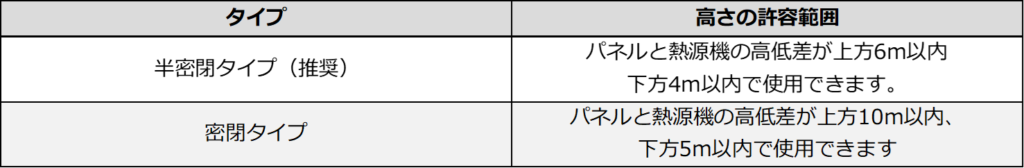 高さ熱源機の位置によって施工内容および施工費用がどう変動する場合がありますので、配置計画時にしっかりと現場の状況を確認した上で、最終的な設置位置を決定していただくことをお勧めします。