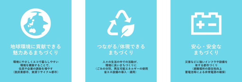 エネルギーを中心とした視点から、地球環境に良く、かつ住みやすいまちづくりを行うことで、価値の高い都市をつくり、住民(老若男女)・企業の誘致が進み、持続可能な経済成長が見込めるまちづくりのお手伝いをいたします。