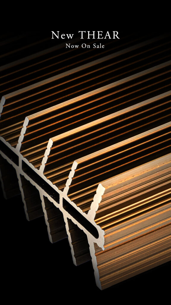 THEAR 3 Genは、革新的な広角輻射フィンFINS-360°(特許取得済み)を採用し、従来のモデルに比べ約13.6%輻射効果が向上しています。また、部屋の明るさや光のあたる角度、視点の変化によって形や色が変わるハイデザインが特徴です。さらに、結露水を排出するためのドレンパンには、断熱性能の高い樹脂製の厚い板を二重構造にし、空気層を設けることで漏水リスクを万全に軽減する仕様となっています